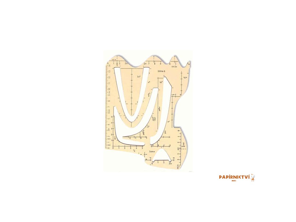 Šablona grafů funkcí je vyrobena z kouřového průhledného polystyrenu. Je určena pro práci s ohrocenou tužkou, mikrotužkou, versatilkou nebo technickými pery. Průběhy jednotlivých grafů funkcí jsou vyjádřeny vnitřními i obvodovými křivkamií. Technologií přesného sítotisku, který je při běžném používání odolný proti opotřebení, je natištěna milimetrová stupnice s označením každého centimetru na levé hraně šablony a stupnice u jednotlivých grafů funkcí. Šablona grafů funkcí je určena ke kreslení průběhů funkcí: y=x2, y=2x2, y=x2/2, y=x3, y=1/x, y=2x, y=ex, y=10x, y=sin x, y=sin 2x, y=sin x/2, y=2 sin x, y=tg x. Předurčena je pro použití ve škole i v kanceláři. Zabalená je do polyetylenového sáčku s eurozávěsem.
