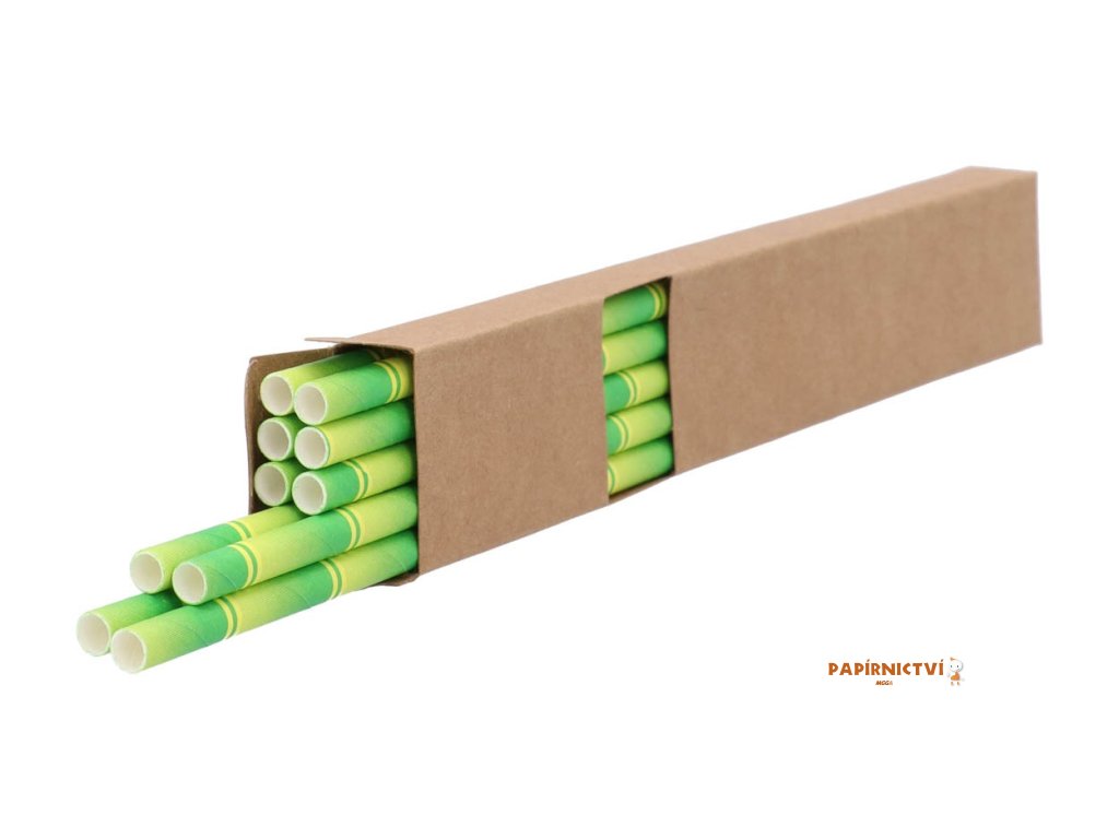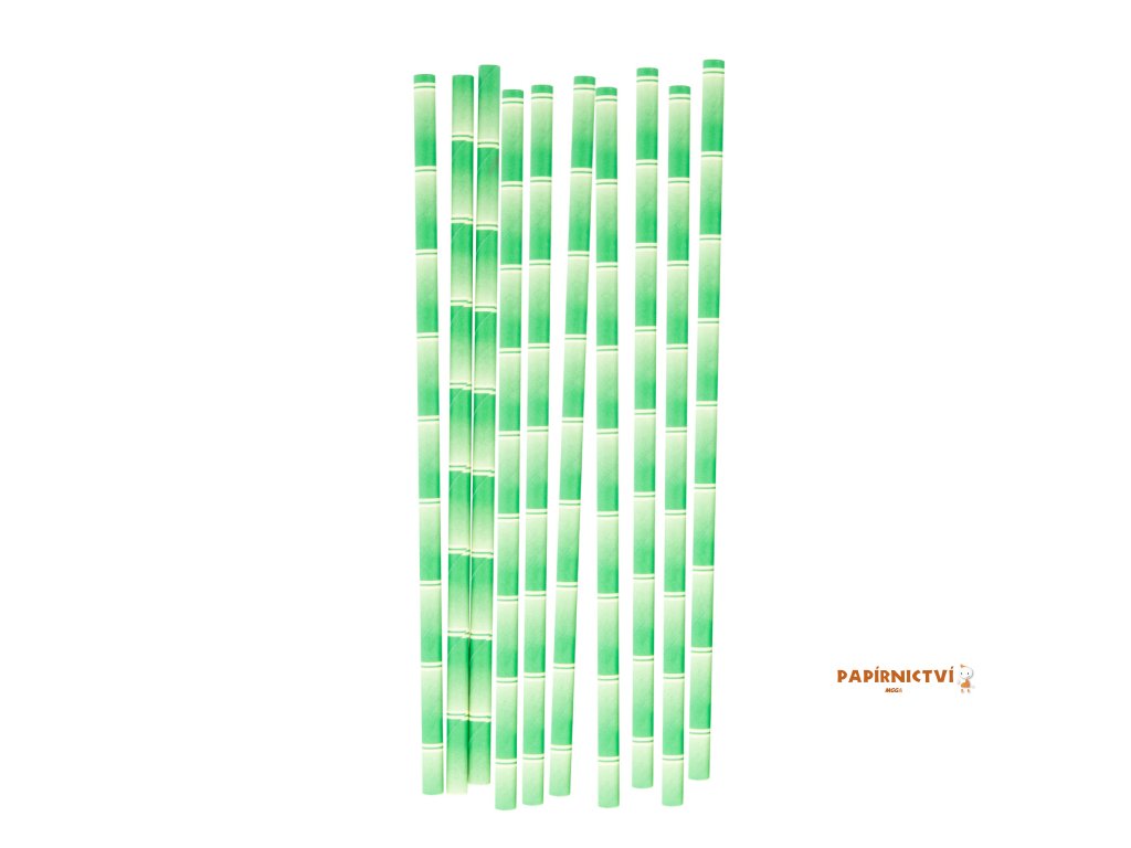 10 ks papírových brček na pití se vzorem bambusu, v krabičce z kraftového papíru.