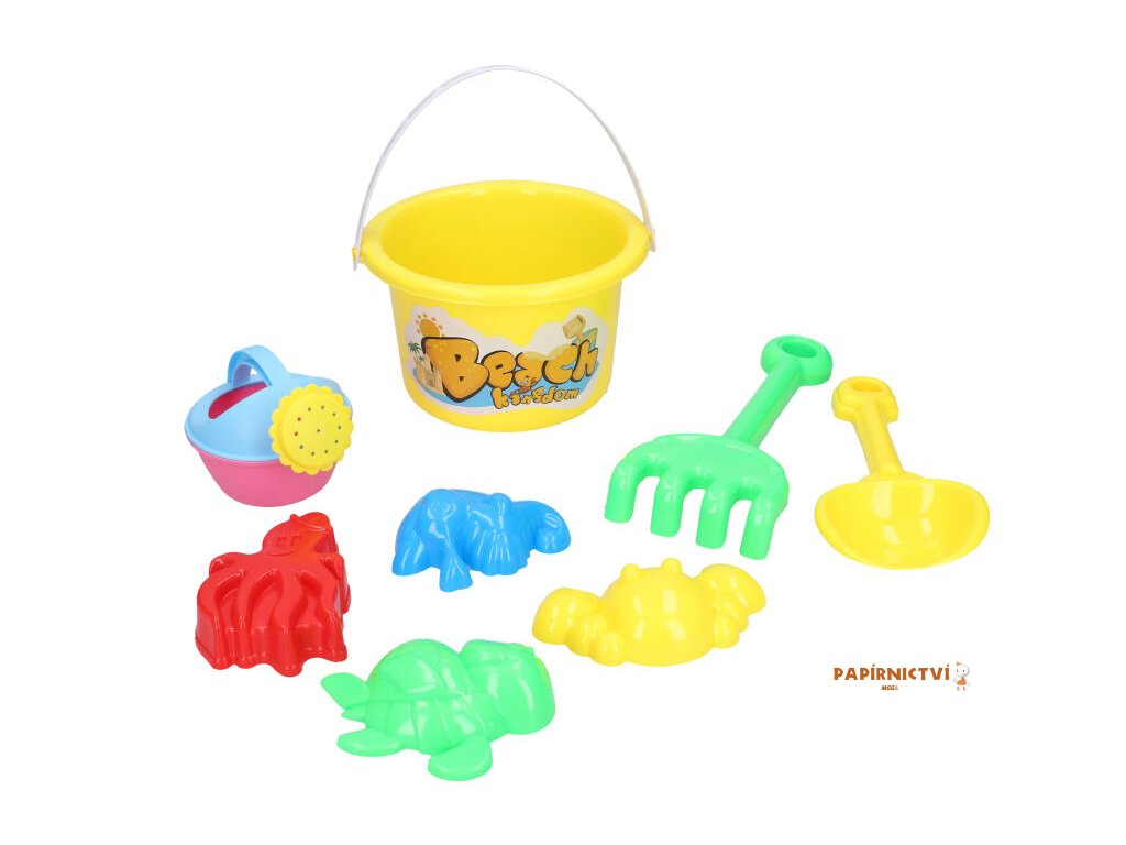 S touto barevnou sadou na písek půjde stavění hradů a báboviček raz dva! Set je vhodný na pískoviště, k vodě i na zahradu. Obsah balení: kyblík s obrázkem lopatka konvička hrabičky 4 formičky Doporučený věk: od 3 let