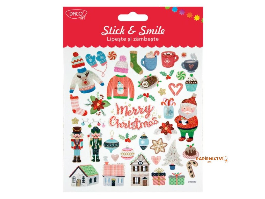 3D pěnové samolepky pro opakované použití. Set krásných samolepek a hrací 3D kartonový domeček s motivem vánoční dílny.