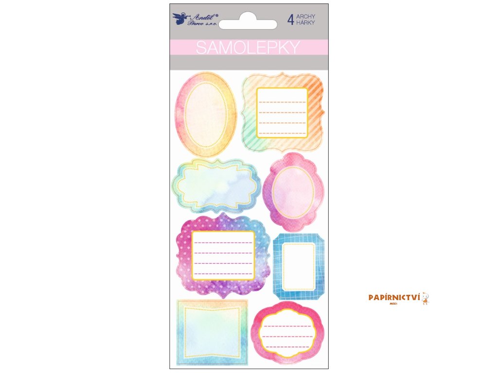 Samolepky popisovací s ražbou 4 archy, 17 x 9 cm IIII
