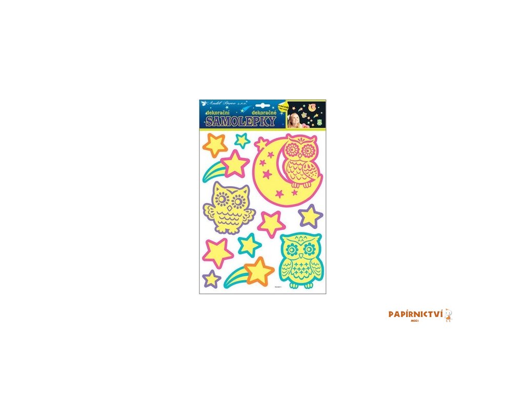 Samolepky svítící ve tmě 35x28 cm, sovy