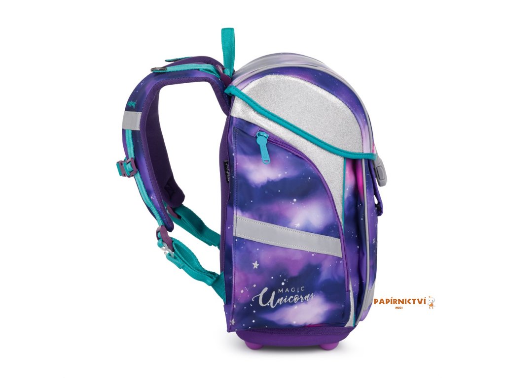 Školní batoh řady Premium Light nabízí kvalitu, prostor na školní potřeby i odlehčenou konstrukci pro pohodlnější nošení. Díky odlehčenému materiálu váží batoh pouhých 985 g. Polstrování je z příjemného prodyšného materiálu, široké měkčené popruhy jsou navrženy tak, aby dokonale přilnuly a rovnoměrně zatížily ramena dítěte. Pro pohodlnější nošení je batoh dále vybaven přitažnými a hrudními popruhy. Batoh je i navíc opatřen přidávnými háčky pro uchycení popruhů. Batohy ocení především ti nejmladší školáci s výškou od 121 cm. Nechybí ani praktické reflexní prvky, jednoduché magnetické zapínání, vnitřní rozřaďovač i velké množství kapes. Batoh Premium Light bude tak perfektním parťákem nejen do školy. Délka zádového panelu: 33 cm. Objem: 26 l. Nosnost: 8 kg.