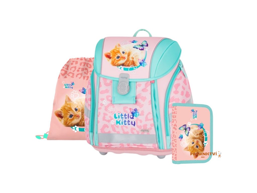 Aktovka: Školní batoh řady Premium Light nabízí kvalitu, prostor na školní potřeby i odlehčenou konstrukci pro pohodlnější nošení. Díky odlehčenému materiálu váží batoh pouhých 970 g. Polstrování je z příjemného prodyšného materiálu, široké měkčené popruhy jsou navrženy tak, aby dokonale přilnuly a rovnoměrně zatížily ramena dítěte. Pro pohodlnější nošení je batoh vybaven přitažnými a hrudními popruhy. Batoh je i navíc opatřen přidávnými háčky pro uchycení popruhů. Batohy ocení především ti nejmladší školáci s výškou od 121 cm. Nechybí ani praktické reflexní prvky, jednoduché magnetické zapínání, vnitřní rozřaďovač i velké množství kapes. Batoh Premium Light bude tak perfektním parťákem nejen do školy. Délka zádového panelu: 33 cm. Objem: 26 l. Nosnost: 8 kg. Sáček: Praktický sáček na cvičky nebo přezůvky do školy. Uzavírá se snadno stažením šňůrek. Penál: Jednopatrový školní penál se dvěma chlopněmi bez náplně. Gumová poutka k uchycení psacích potřeb. Na vnitřní chlopni je průhledná fólie na rozvrh hodin..