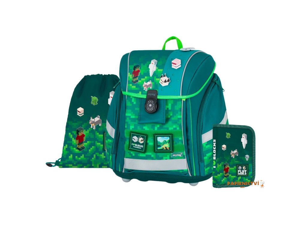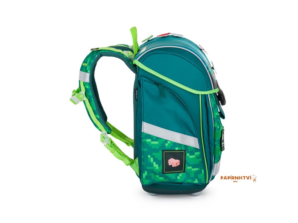 Aktovka: Školní batoh řady Premium Light nabízí kvalitu, prostor na školní potřeby i odlehčenou konstrukci pro pohodlnější nošení. Díky odlehčenému materiálu váží batoh pouhých 970 g. Polstrování je z příjemného prodyšného materiálu, široké měkčené popruhy jsou navrženy tak, aby dokonale přilnuly a rovnoměrně zatížily ramena dítěte. Pro pohodlnější nošení je batoh vybaven přitažnými a hrudními popruhy. Batoh je i navíc opatřen přidávnými háčky pro uchycení popruhů. Batohy ocení především ti nejmladší školáci s výškou od 121 cm. Nechybí ani praktické reflexní prvky, jednoduché magnetické zapínání, vnitřní rozřaďovač i velké množství kapes. Batoh Premium Light bude tak perfektním parťákem nejen do školy. Délka zádového panelu: 33 cm. Objem: 26 l. Nosnost: 8 kg. Sáček: Praktický sáček na cvičky nebo přezůvky do školy. Uzavírá se snadno stažením šňůrek. Penál: Jednopatrový školní penál se dvěma chlopněmi bez náplně. Gumová poutka k uchycení psacích potřeb. Na vnitřní chlopni je průhledná fólie na rozvrh hodin..