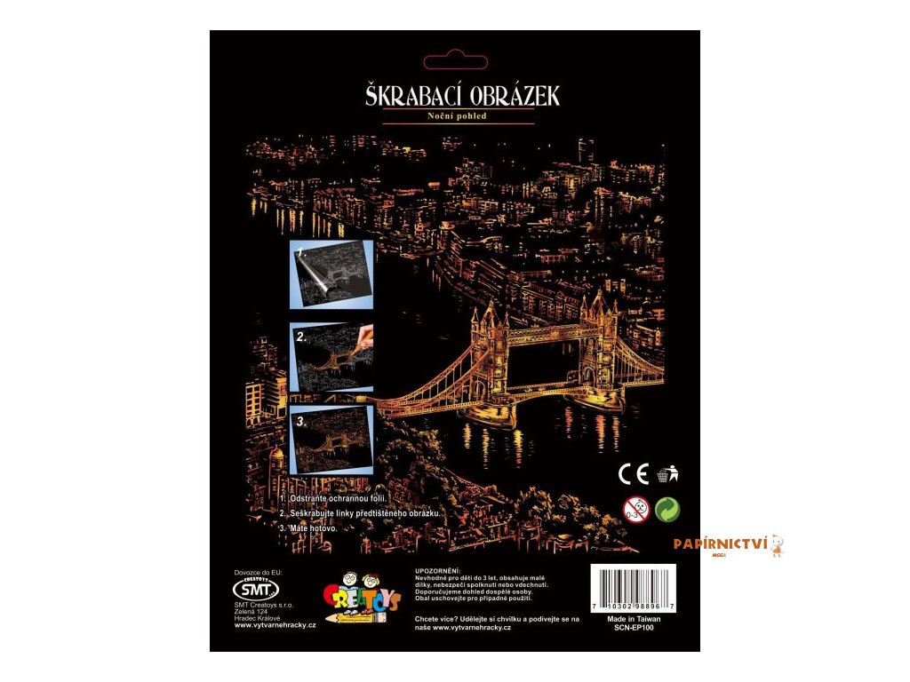 Škrabací obrázek zlatý 20 x 25 cm Sada obsahuje obrázek natištěný na černém kartonu a umělohmotné škrabací pero s kovovým hrotem. Seškrabte linky předtištěného obrázku. Vhodné pro děti od 6 let.