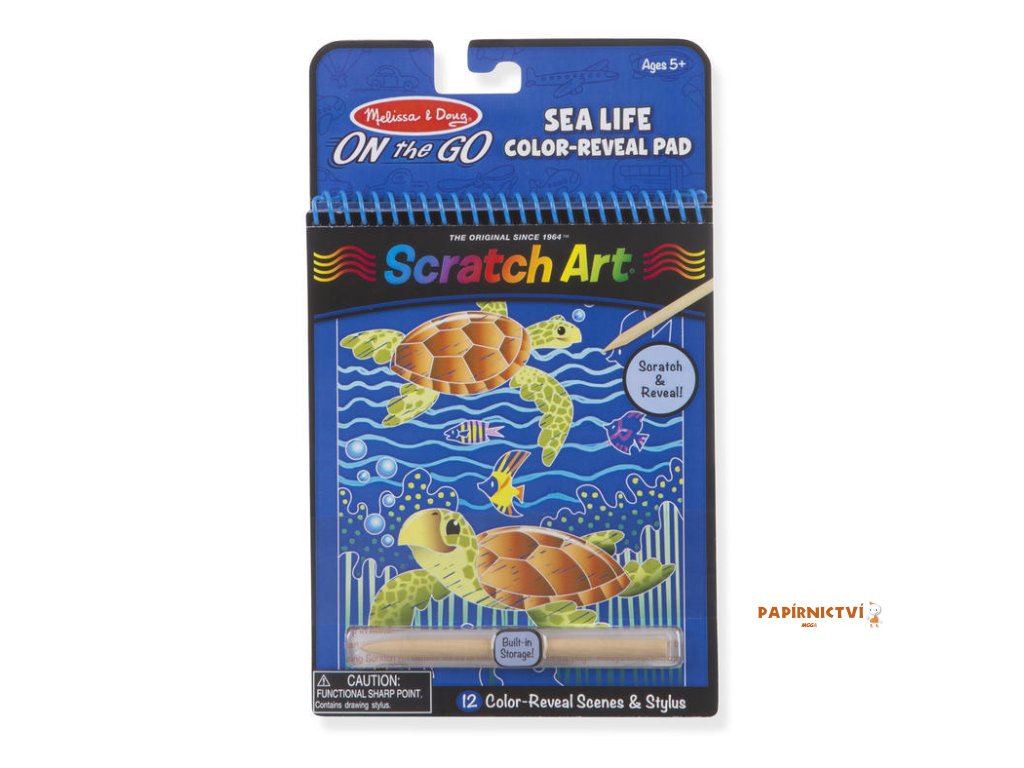Pomocí dřevěného pera děti objeví seškrábáním povrchu 12 scén s mořskými zvířátky a vším co se pod možem skrývá.