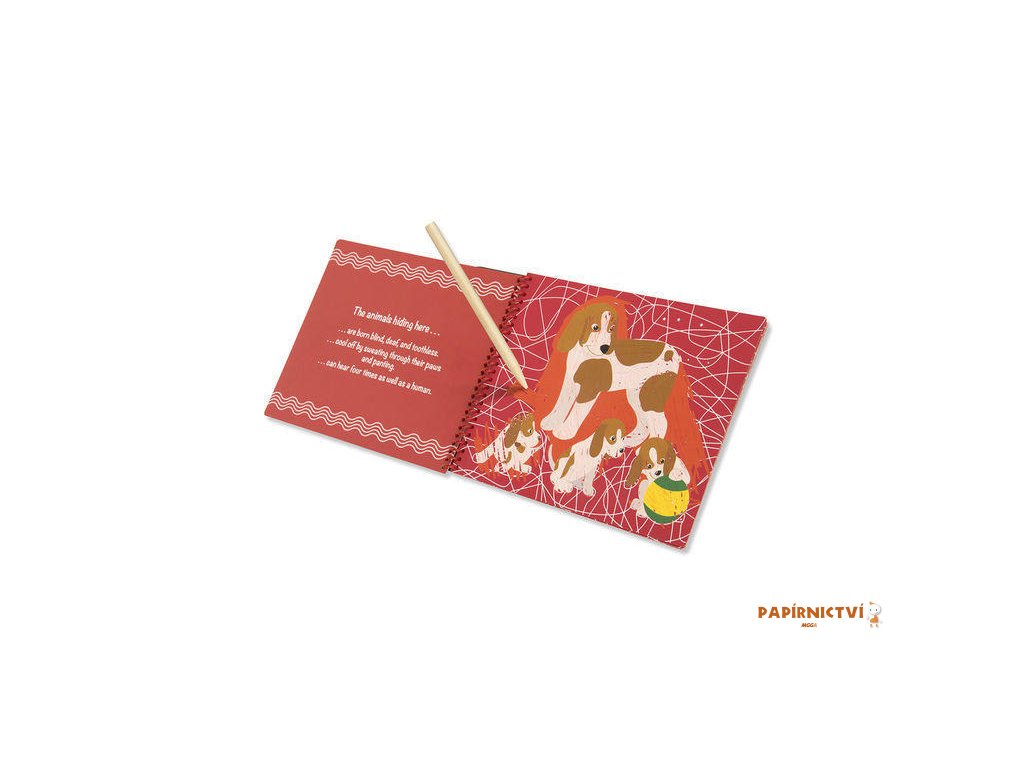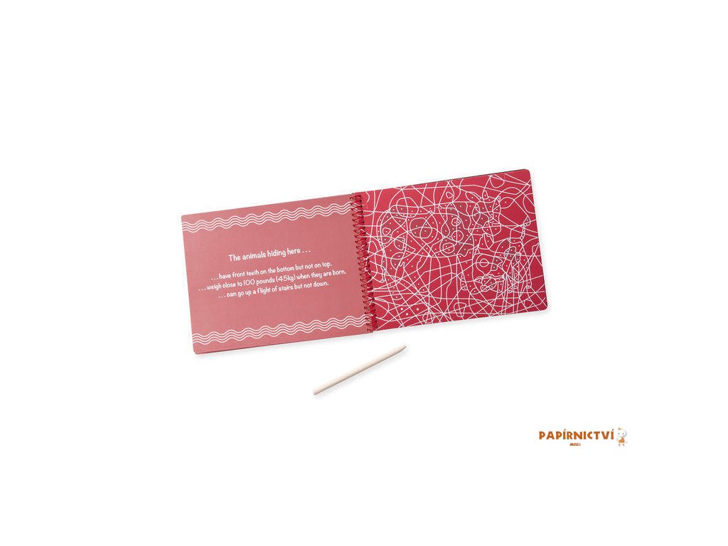 Pomocí dřevěného pera děti objeví seškrábáním povrchu 12 obrázků se schovanými zvířátky. Přidáním detailů vytvoří svůj unikátní obrázek.