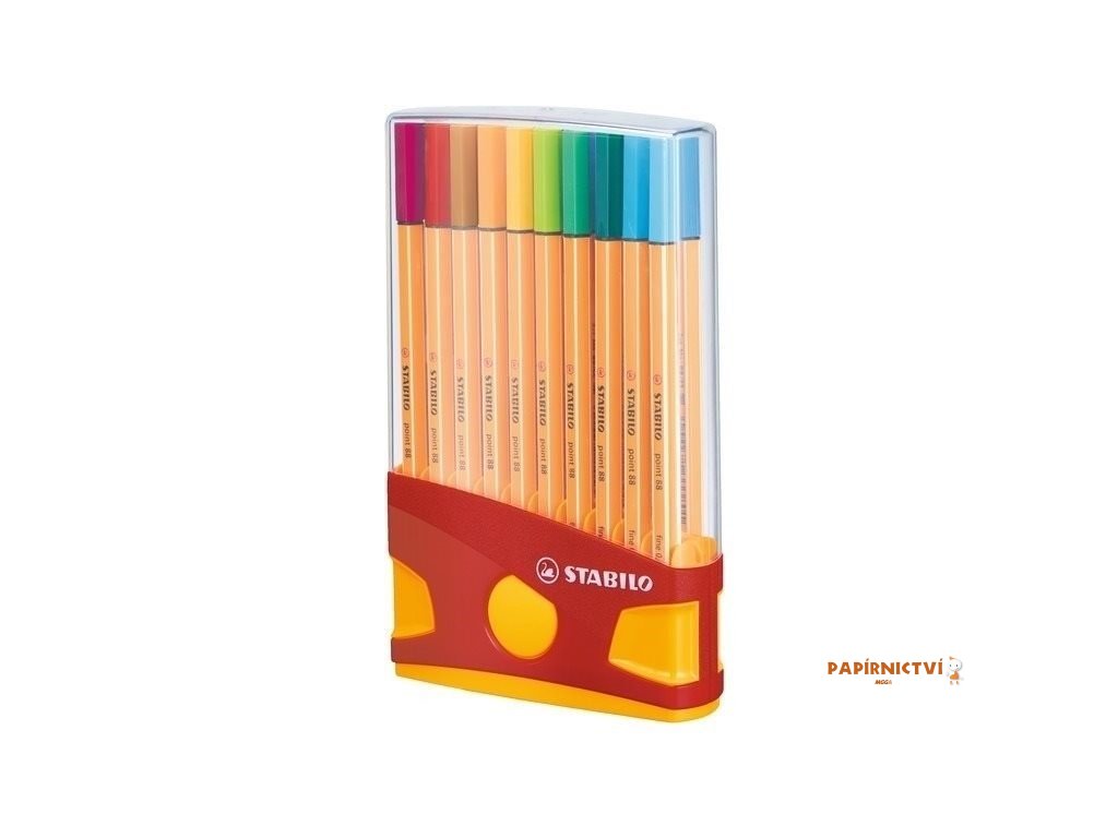 Máte rádi na výběr z více per? Tak potom vyzkoušejte liner, který oceníte při psaní jemným písmem. Liner STABILO point 88 ColorParade pouzdro červená/oranžová 20 barev využívá vodový inkoust, který se výborně zapíjí. Tloušťka linky se pohybuje kolem 0,4 mm. O toto pero se nebudete muset bát. Mechanismus s uzávěrem obstará, že váš psací pomocník jen tak nevyschne.