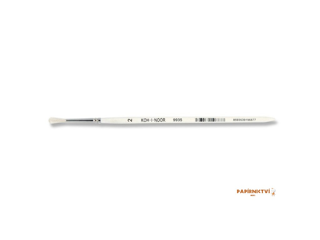 Kulatý školní štětec pro školní účely. Kulatý štětec č. 2, dřík bíle lakovaný, toulec chromovaný. Dřík dřevěný, toulec kovový (chromovaný), vlas „ koza “. Velikost 2, průměr vlasu 2 mm, délka vlasu12 mm, délka toulce 25 mm, délka dříku 135 mm.
