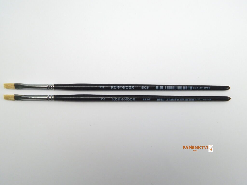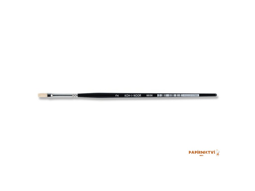 Plochý školní štětec pro školní účely. Plochý štětec č. 2, dřík černě lakovaný, toulec chromovaný. Dřík dřevěný, toulec kovový (stříbrný), vlas „prase“. Velikost: 2, šířka vlasu: 4 mm, délka vlasu: 10 mm, délka toulce: 33 mm, délka dříku: 150 mm. Celková délka štětce je 193 mm.