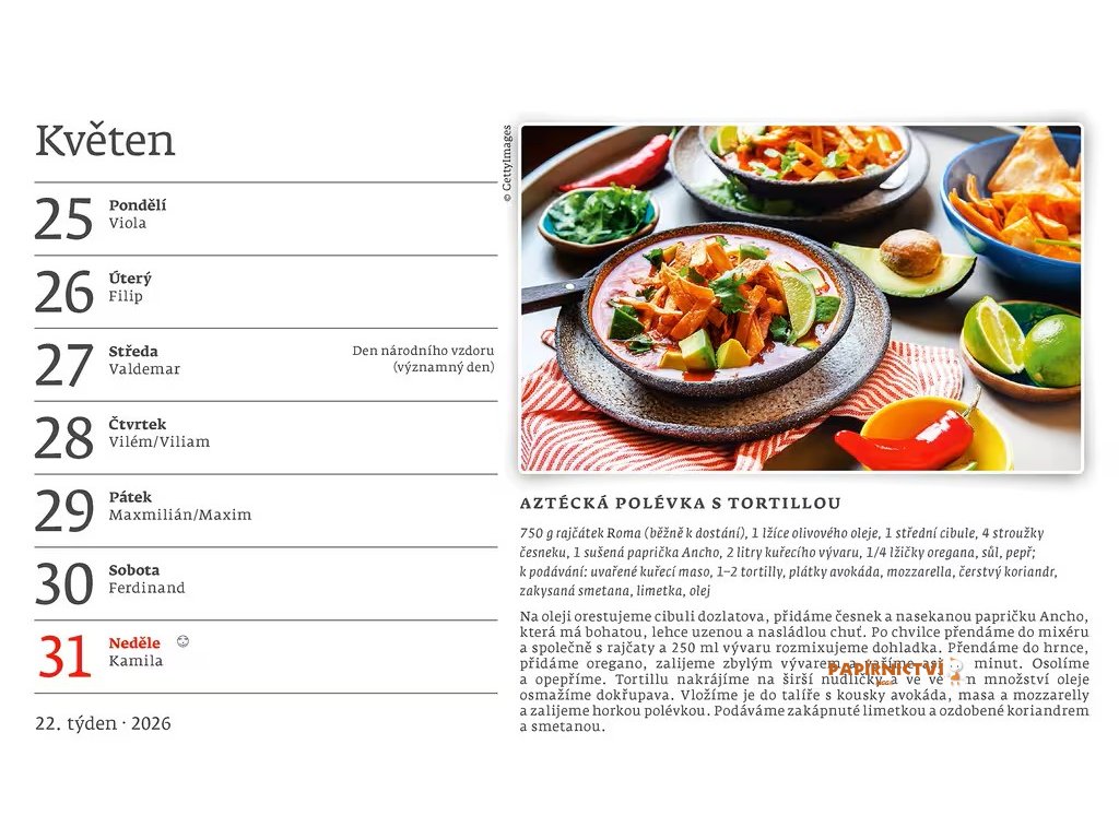 Kalendář Česká kuchyně Formát kalendáře: 22,6 x 13,9 cm