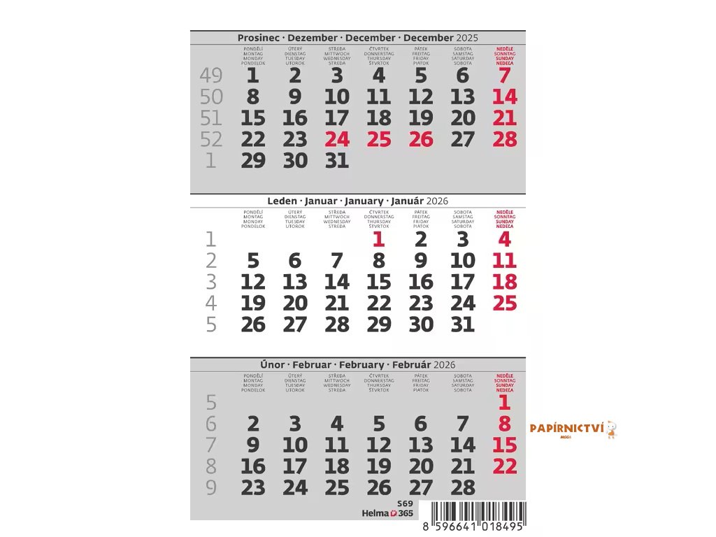 Stolní kalendář MINI tříměsíční kalendář ČR/SR 2026 110x160(35)mm S69-26