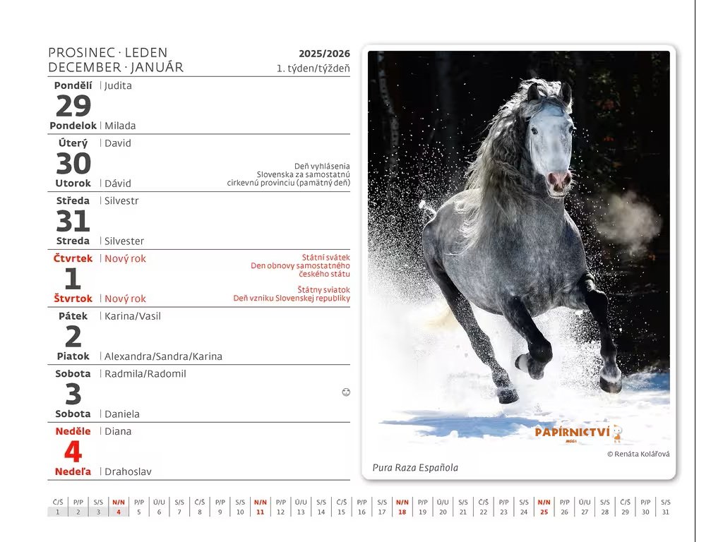 Kalendárium: české/slovenské týdenní řádkové