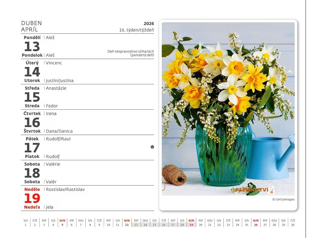 Stolní kalendář MiniMax Květiny/Kvetiny 2026 171x139(25)mm SM07-26