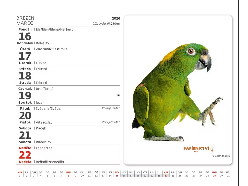 Kalendárium: české/slovenské týdenní řádkové