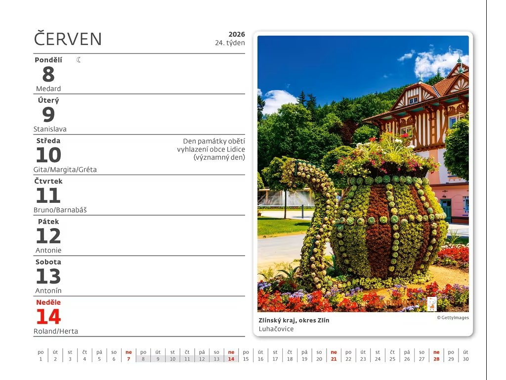 Čitelný týdenní kalendář Formát kalendáře: 21,1 x 14,8 cm