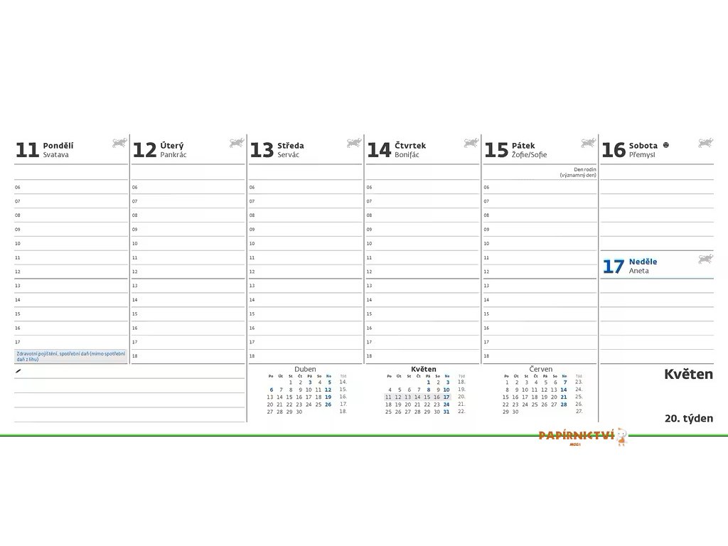 Čitelný týdenní kalendář Formát kalendáře: 21,1 x 14,8 cm
