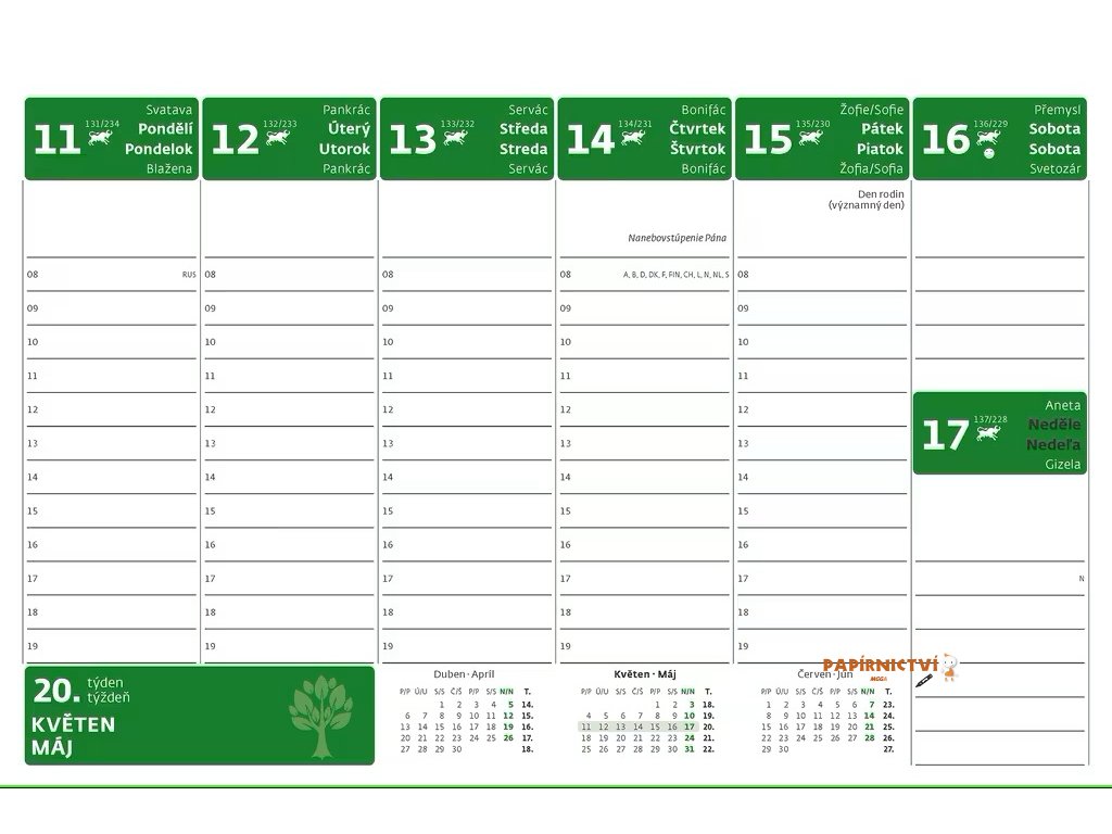Kalendárium: české/slovenské týdenní sloupcové