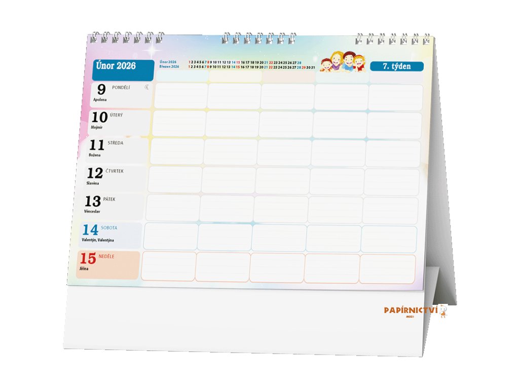 Stolní týdenní kalendář pro všechny členy rodiny.