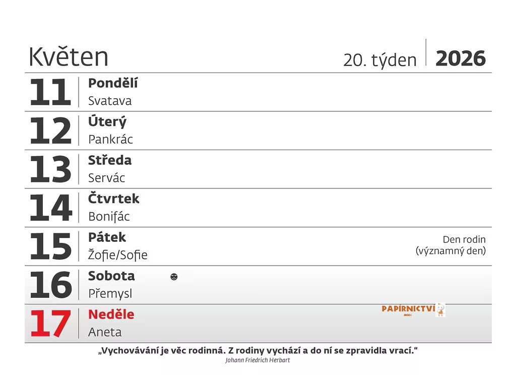 Kalendárium: české týdenní řádkové s citáty