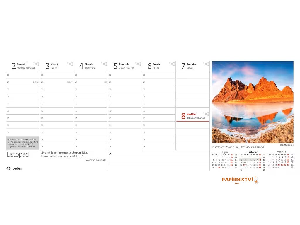 Čitelný týdenní kalendář Formát kalendáře: 21,1 x 14,8 cm