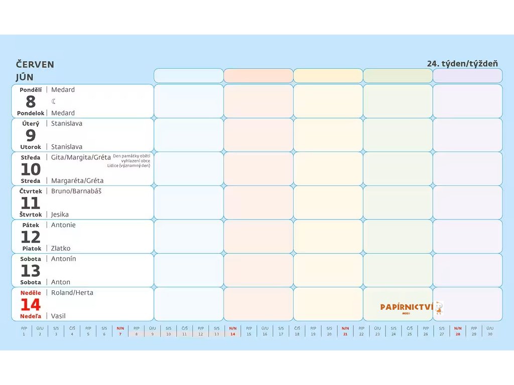 Čitelný týdenní kalendář Formát kalendáře: 21,1 x 14,8 cm