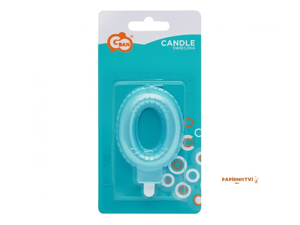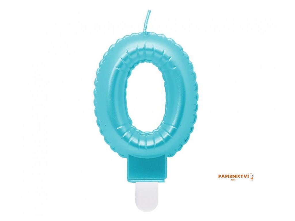 Svíčka na podstavci číslice 0, světle modrá, perleťová