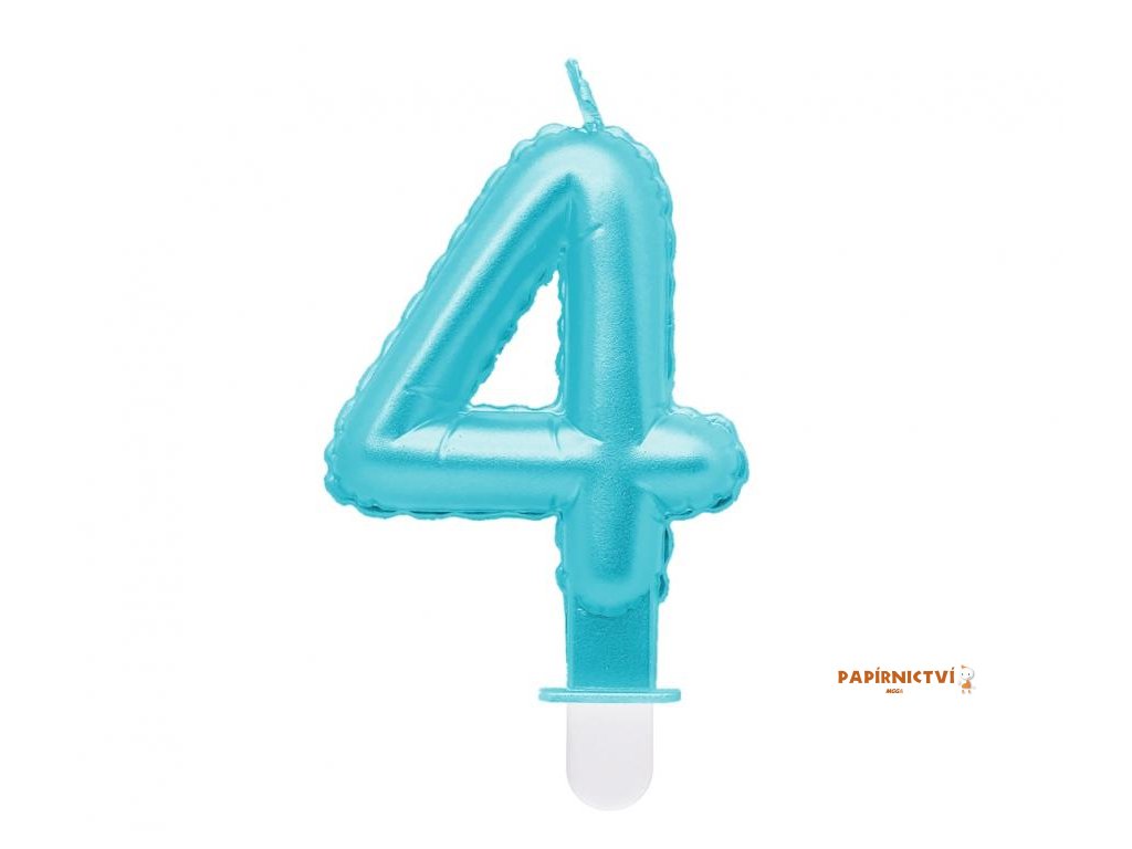 SVÍČKA NA PODSTAVCI ČÍSLICE 4, SVĚTLE MODRÁ PERLEŤOVÁ