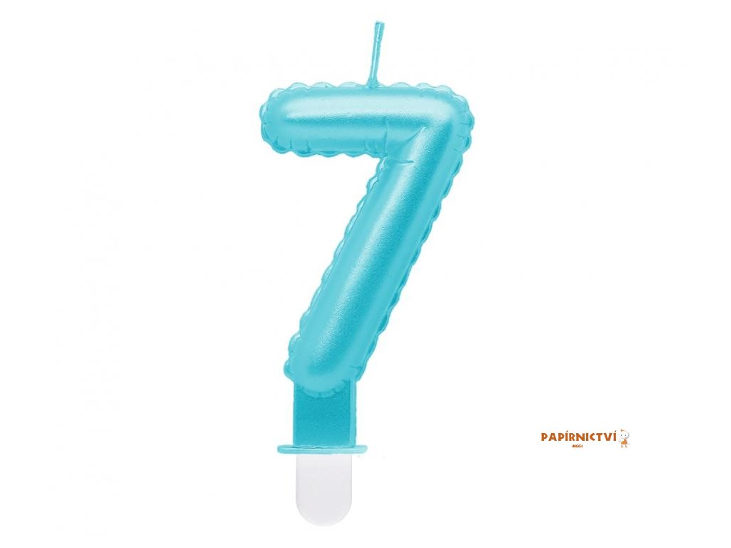 Svíčka číslo 7 na podstavci, světle modrá, perleťová