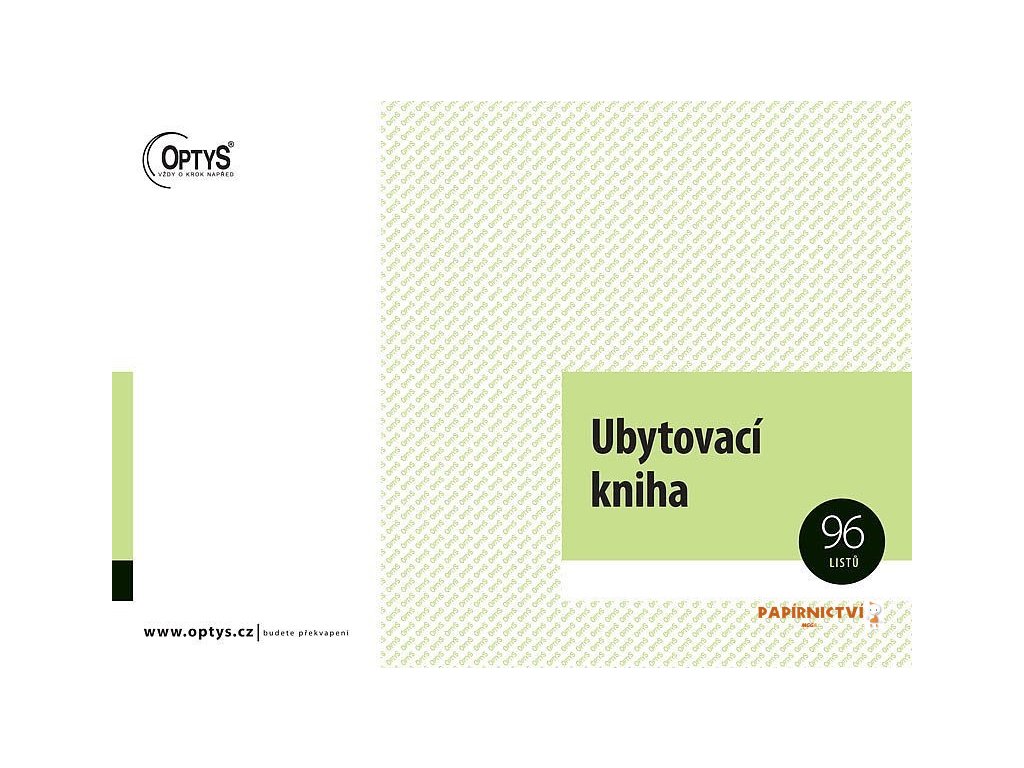 Ubytovací kniha OP1272 ve formátu A4 na šířku se zelenou obálkou má 96 listů. Kniha se nepropisuje a není očíslovaná.
