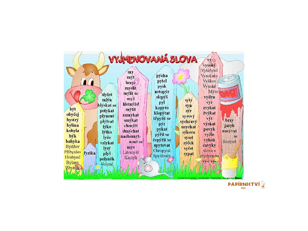 - Obrázek s výčtem vyjmenovaných slov.
