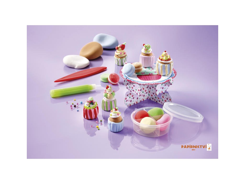 Vyrob si více než 10 úžasných dortíků dle vlastní fantazie ze samotvrdnoucí modelíny a vyskládej si je na přiložený podnos.