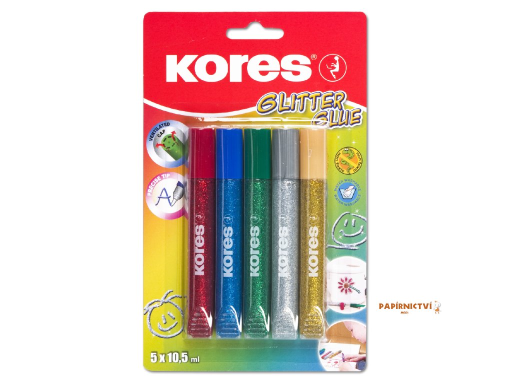 - Třpytivé lepidlo v 5 různých barvách - červená, modrá, zelená, stříbrná a zlatá