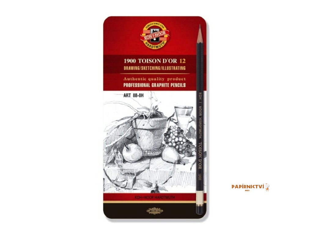 Souprava grafitových tužek 1902 ART - měkké i tvrdé gradace. Šestihranné grafitové tužky, v černém provedení. Grafitové jádro je ve vybraných 12 stupních tvrdosti 8B – 8H, balené po 12 ks do plechové krabičky. Gradace jsou přesně dodržovány. Tužky jsou určeny pro výtvarníky, umělce a techniky.