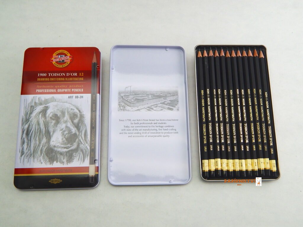 Souprava grafitových tužek 1912 ART - měkké gradace. Šestihranné grafitové tužky, v černém matném provedení. Grafitové jádro je ve vybraných 12 stupních tvrdosti 8B – 2H, balené po 12 ks do plechové krabičky. Gradace jsou přesně dodržovány. Tužky jsou určeny pro výtvarníky, umělce a techniky.