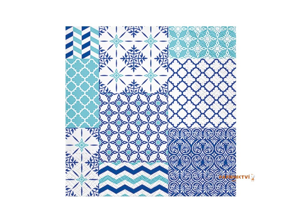 Oživte svůj stůl elegantním ubrouskem s originálním patchworkovým motivem. Kombinace modré, tyrkysové a bílé barvy s geometrickými a ornamentálními vzory působí moderně a zároveň nadčasově. Tento design se hodí pro každodenní stolování i slavnostní příležitosti.