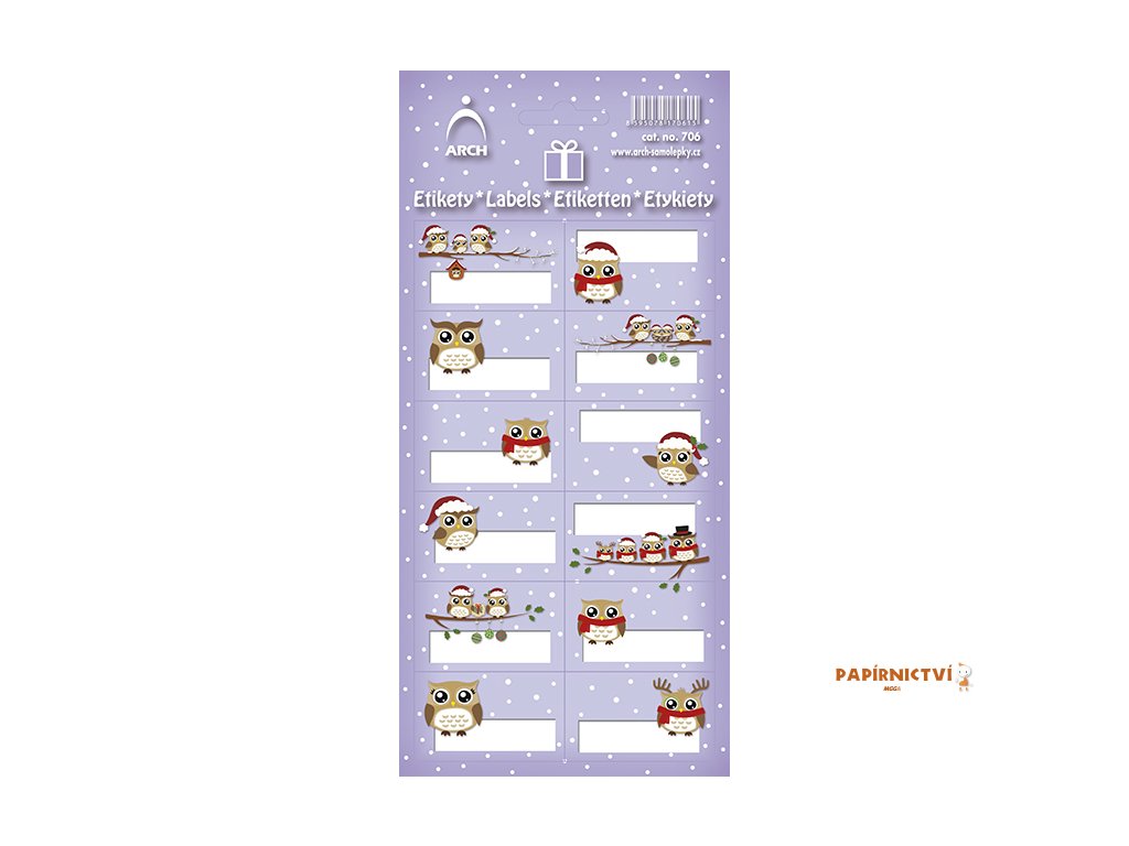 Vánoční etikety na dárky - sovy dekor 706