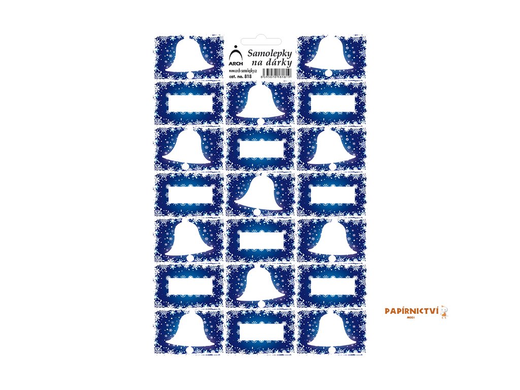 Velké vánoční samolepky na dárky - zvonky modré 818