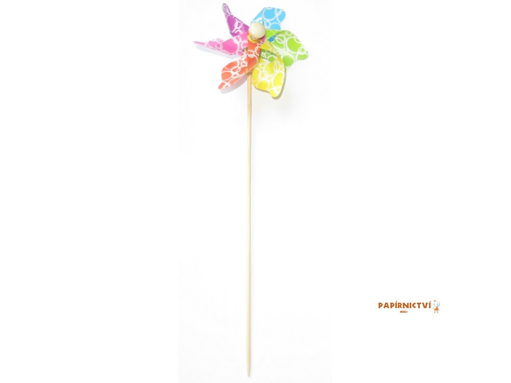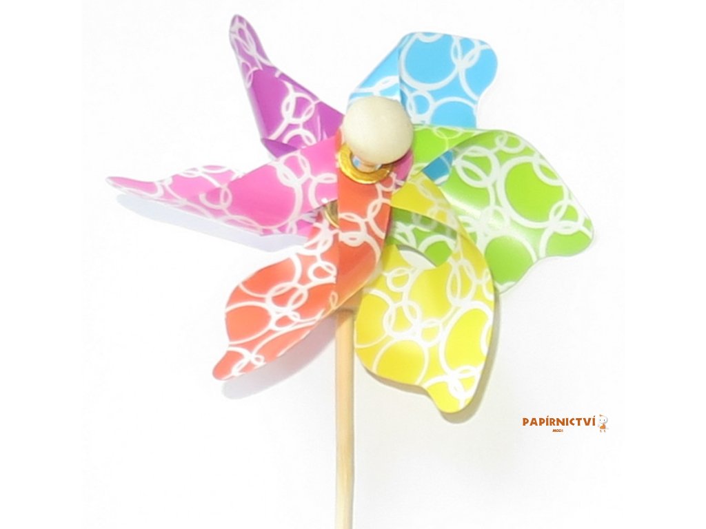 Větrník s barevnými lopatkami a puntíky, 9 cm + špejle
