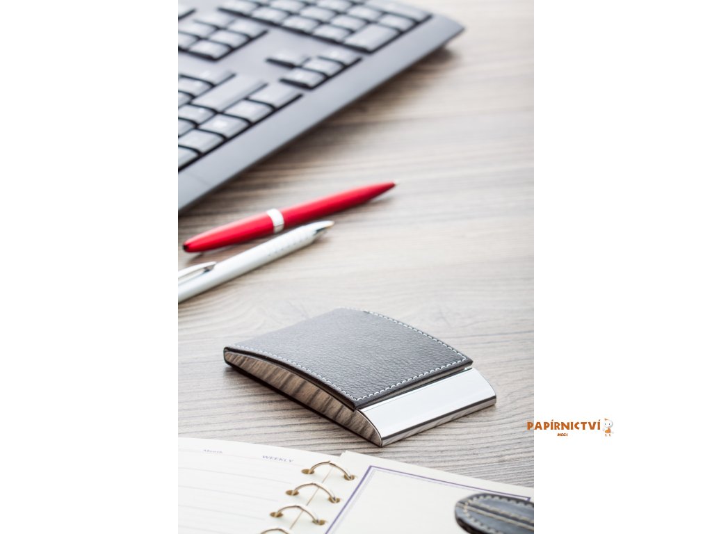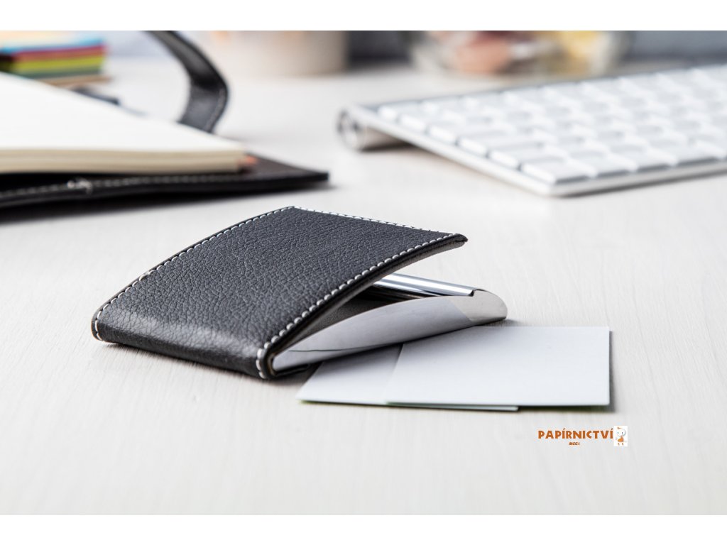 Elegantní vizitkář značky André Philippe, v kovovém rámečku kombinováno s umělou kůží.