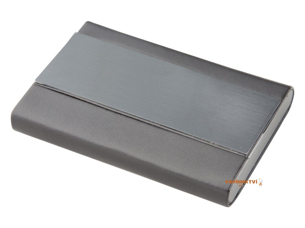 Kovový vizitkář s PU kůží s destičkou z broušeného hliníku.