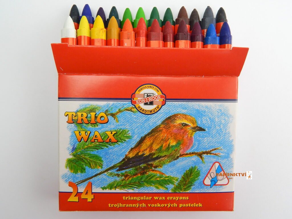 Výrobek se používá jako souprava nerozmyvatelných voskových pastelek určených pro školní, aranžérské a umělecké kreslení – 24 ks souprava. Trojhranné voskové pastelky se zašpičatělým koncem, obalené červeným zavinovacím štítkem. Rozměr 1 ks - TR 10 mm, délka 90 mm.