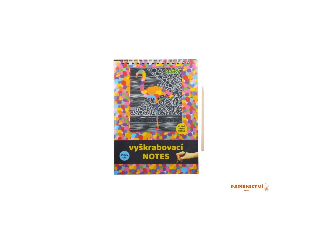 Kreativně se vydovádějte na vyškrabovacím notesu, který má rozměry 14x20 cm. Na jednotlivých listech, můžete pomocí vyškrabovacího pera vytvářet různé pestrobarevné obrázky.