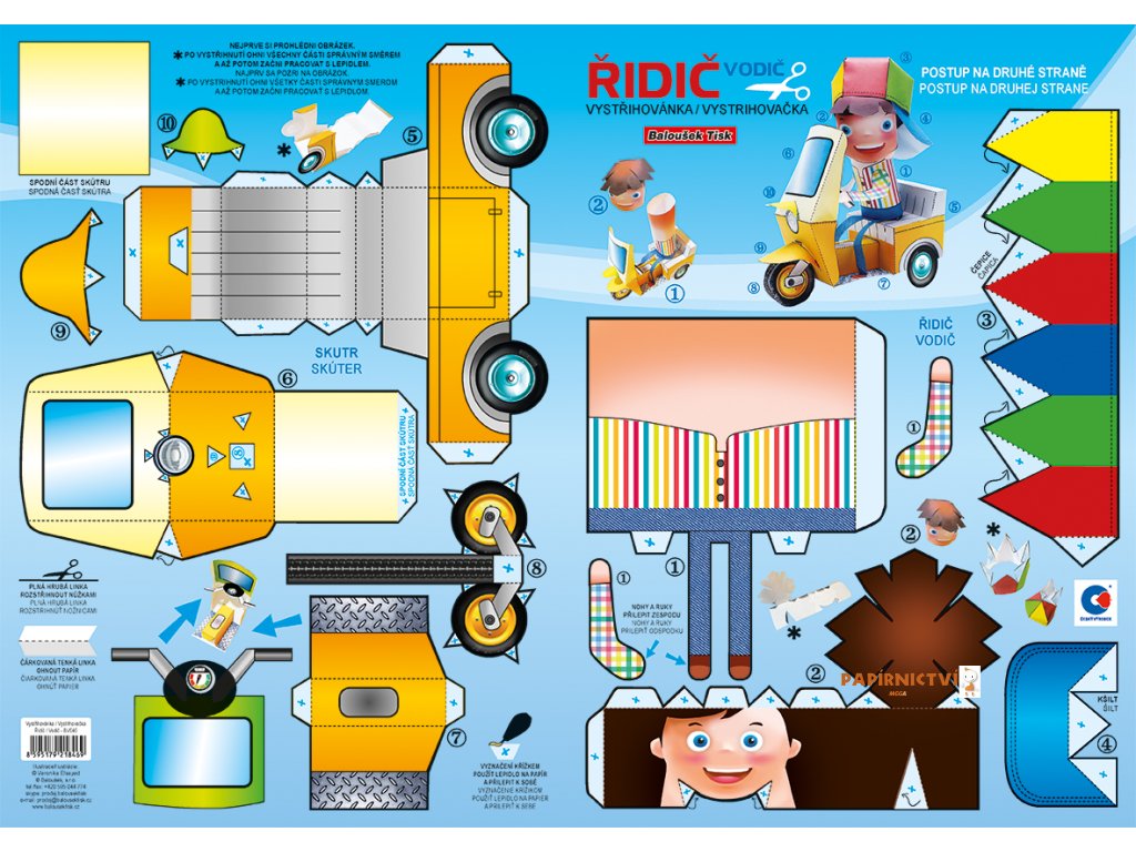 Vystřihovánky obsahují 32 stran obrázků k vybarvení, vystřihnutí a podrobný návod k sestavení, navíc obsahují 2 listy samolepek k dozdobení.