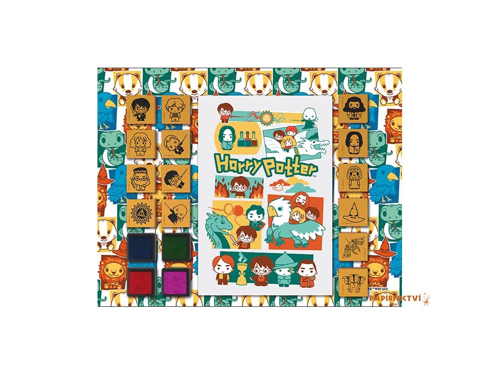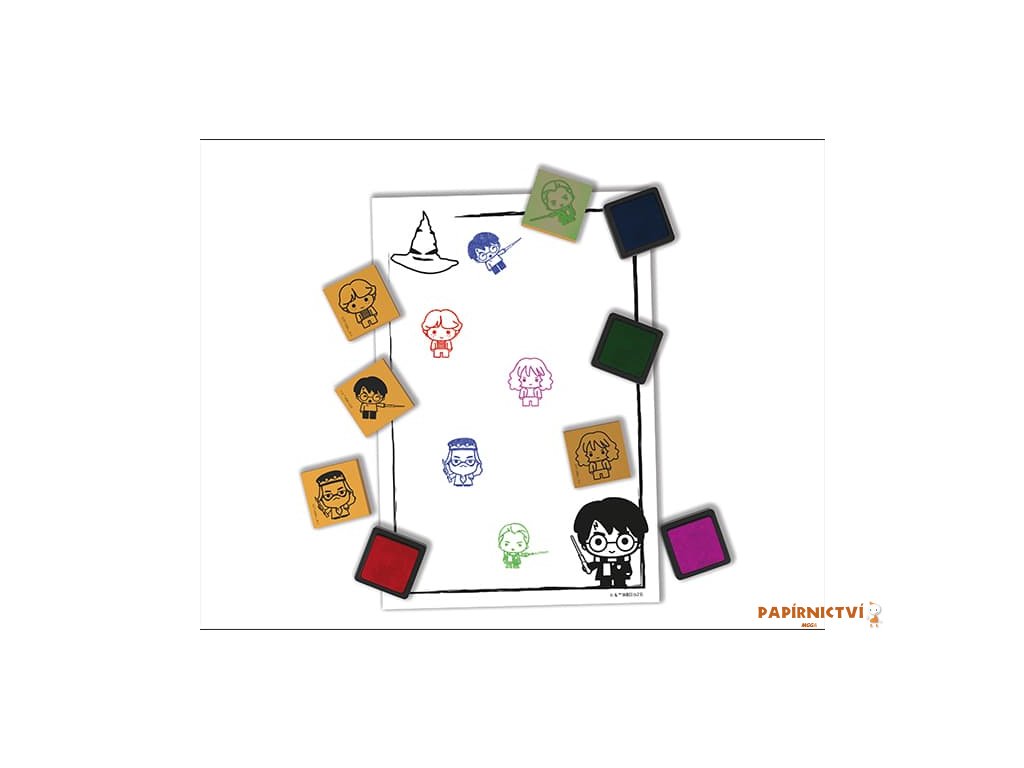 Set obsahuje 14 pěnových razítek, 4 barevné podušky a blok plný zábavných aktivit k luštění a vyplnění.