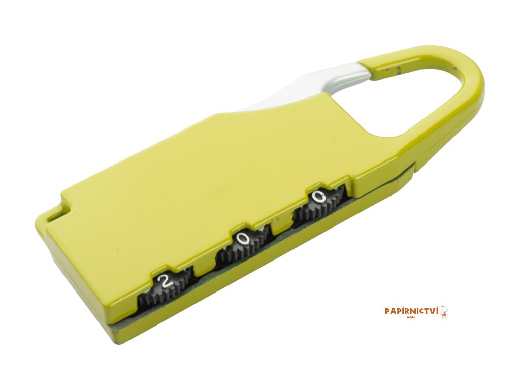Kovový zámek na zavazadlo nebo školní skříňku s 3místným kódem.